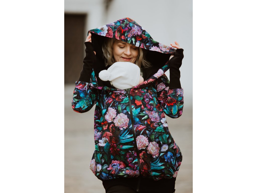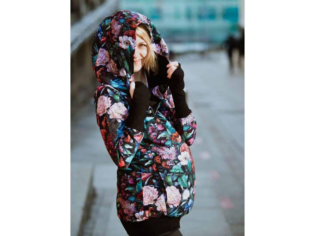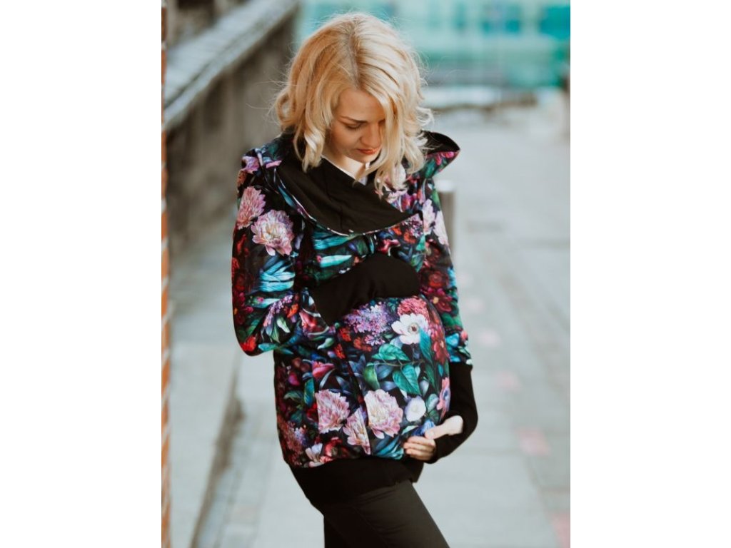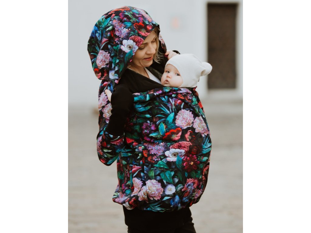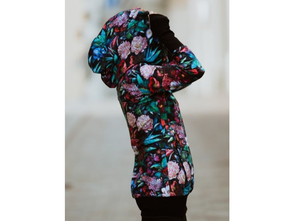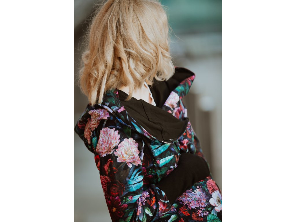 Mikina je zakončena pružnými lemy v pase i na rukávech. Náplety na rukávech mají otvory pro palce. Díky druku, který si zapnete pod krkem už v chladnějších dnech nebudete potřebovat šátek ani šálu (úplně neplatí při nošení děťátka ve předu na těle :) ). Použité zipy jsou od kvalitní a spolehlivé značky YKK.