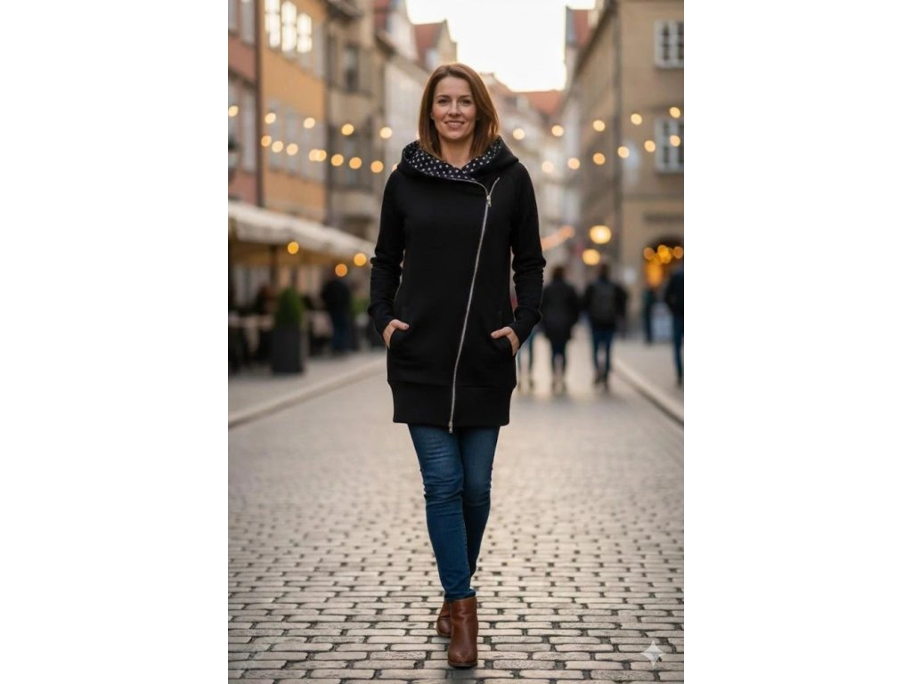 Dlouhá dámská mikina počesaná - Křivák černá/hvězdičky