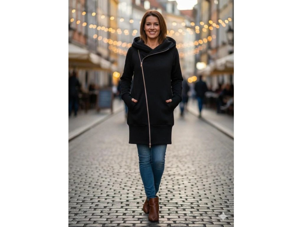 Dlouhá dámská mikina počesaná - Křivák černá