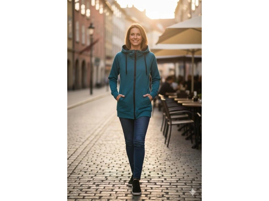 Nosící, dámská mikina počesaná - Petrolejová