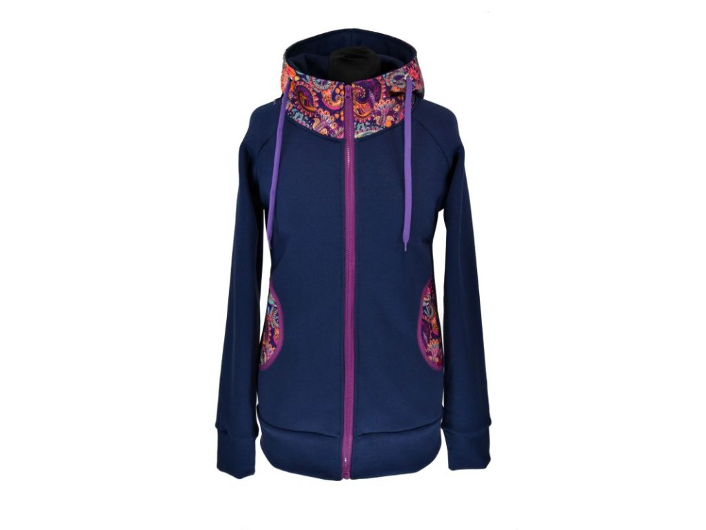 Nosící, dámská mikina warmkeeper - Tm. modrá/ornamenty/fialová