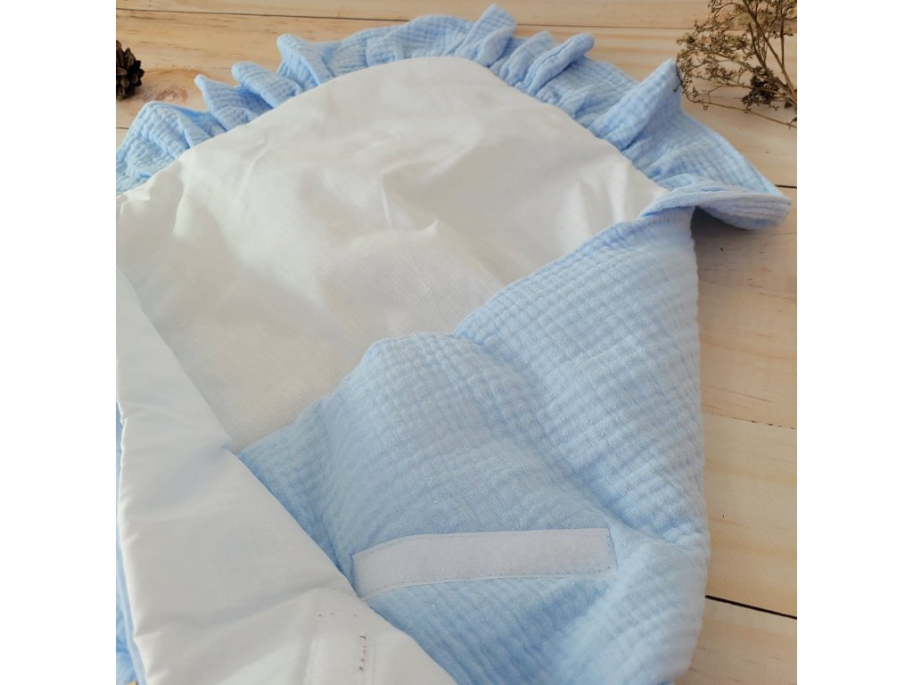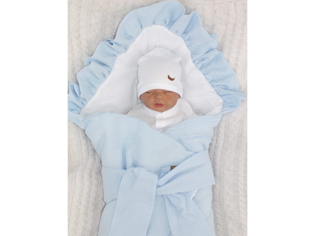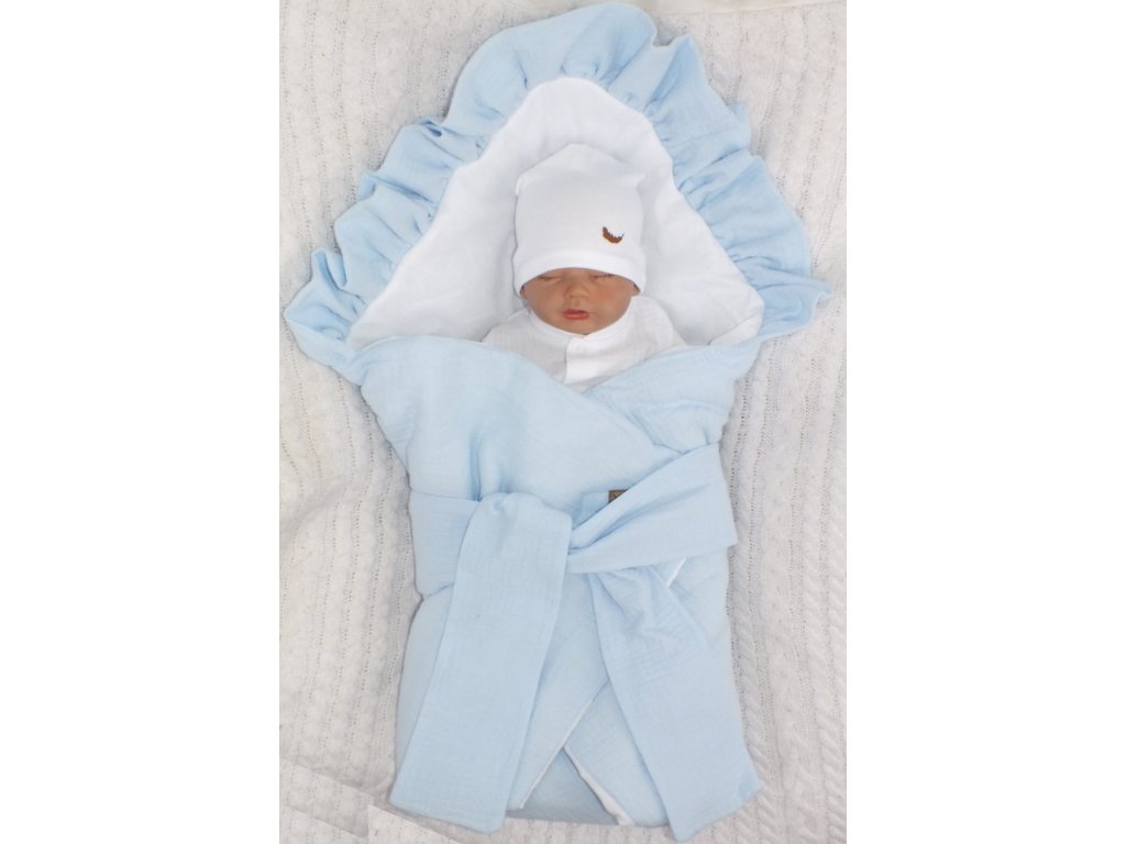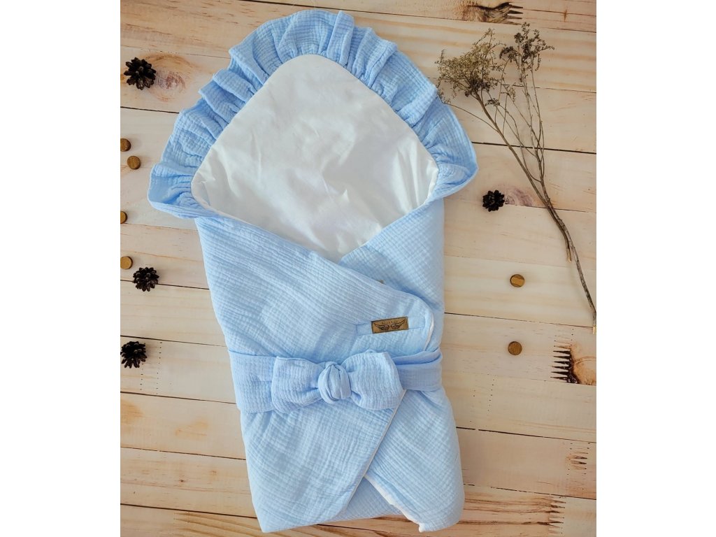 Mušelínová zavinovačka s volánkem a stuhou - Modrá