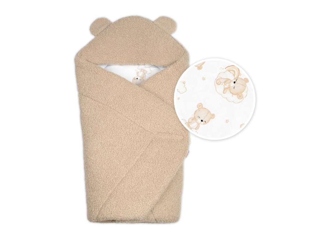 Zavinovačka s kapucí beránek - Malý medvídek/béžová, hnědá