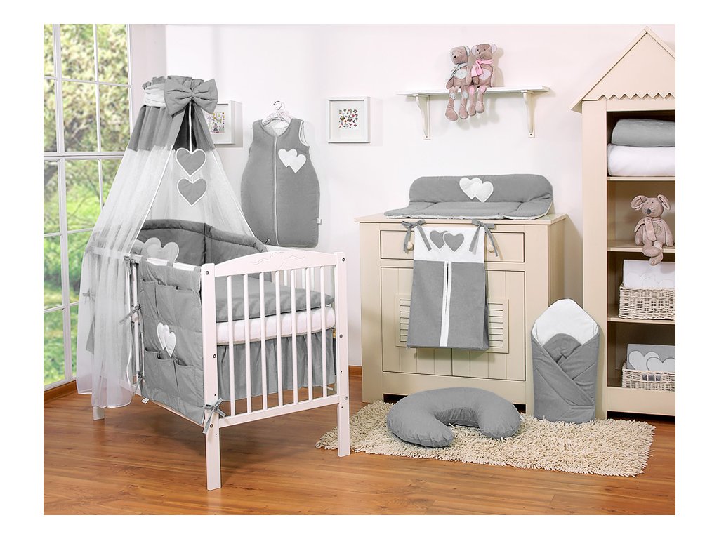 Nebesa jsou doplněná o velkou, tlustou mašli a visící srdíčka, které přitahují pozornost dítěte v prvních měsících a účinně nahrazují kolotoč. Navíc k baldachýnu zdarma dostanete tylovou šerpu, díky které nebesa vypadají ještě elegantněji a jemněji.