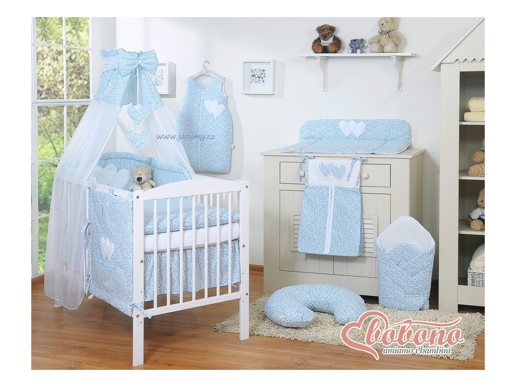 Nebesa jsou doplněná o velkou, tlustou mašli a visící srdíčka, které přitahují pozornost dítěte v prvních měsících a účinně nahrazují kolotoč. Navíc k baldachýnu zdarma dostanete tylovou šerpu, díky které nebesa vypadají ještě elegantněji a jemněji.