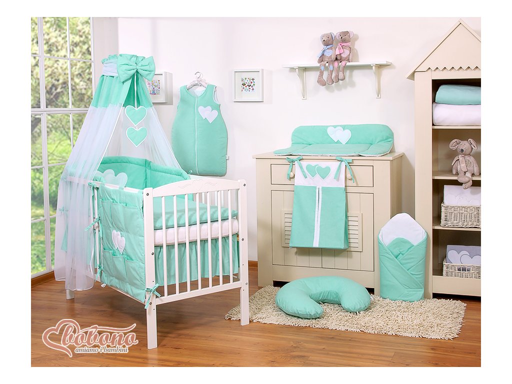 Nebesa jsou doplněná o velkou, tlustou mašli a visící srdíčka, které přitahují pozornost dítěte v prvních měsících a účinně nahrazují kolotoč. Navíc k baldachýnu zdarma dostanete tylovou šerpu, díky které nebesa vypadají ještě elegantněji a jemněji.
