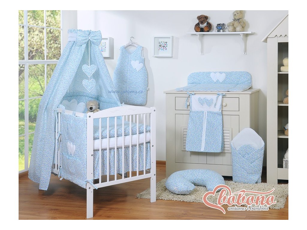 Nebesa jsou doplněná o velkou, tlustou mašli a visící srdíčka, které přitahují pozornost dítěte v prvních měsících a účinně nahrazují kolotoč. Navíc k baldachýnu zdarma dostanete tylovou šerpu, díky které nebesa vypadají ještě elegantněji a jemněji.