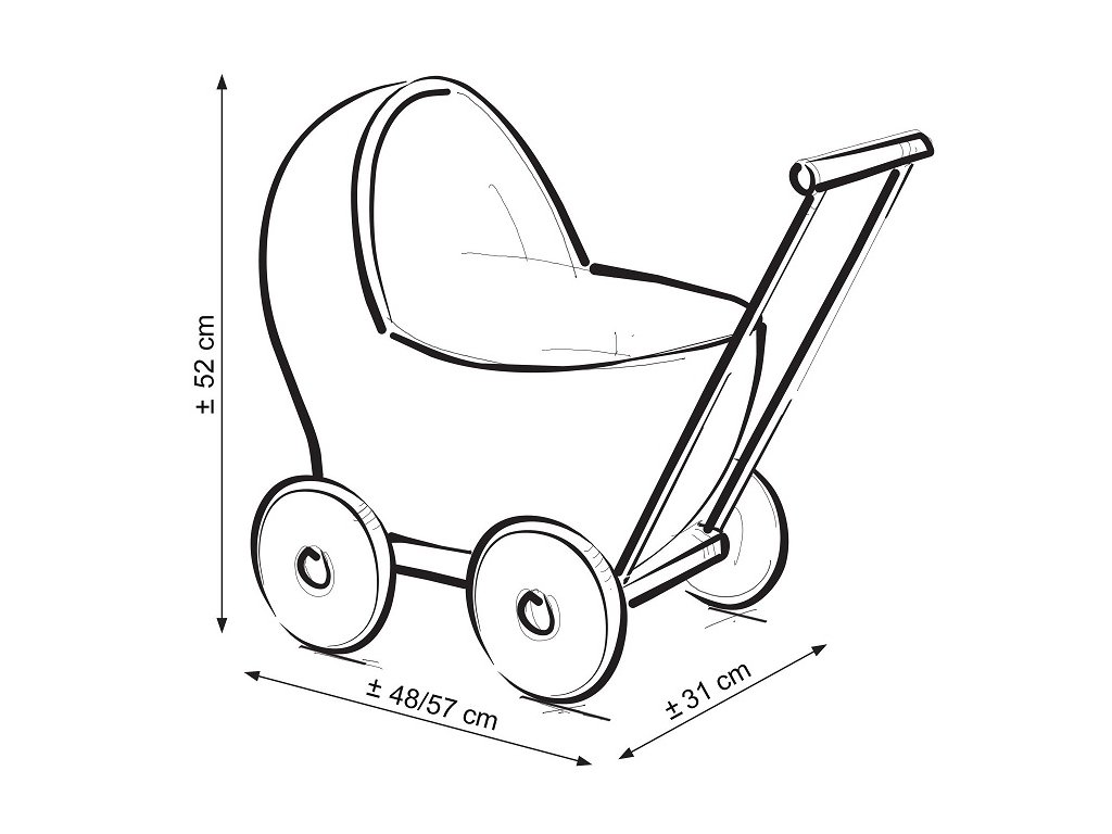 Rozměry kočárku: délka 48/57 cm, šířka 31 cm, výška 51/52 cm, výška rukojeti 47 cm