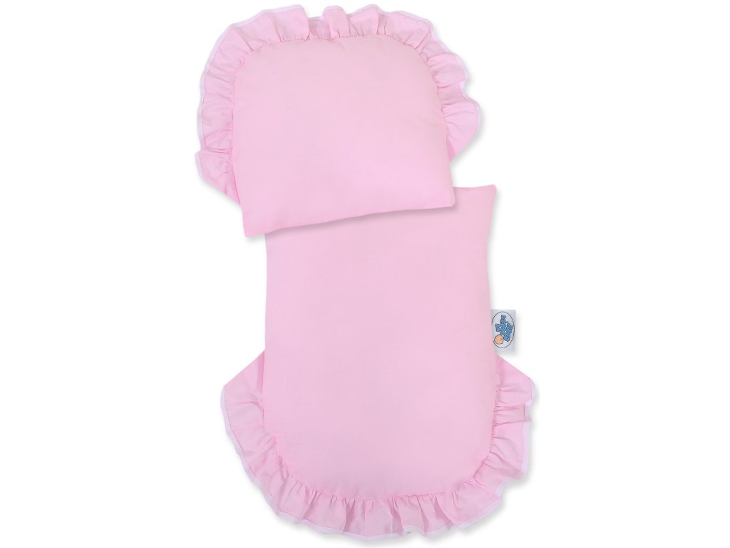 Součástí kočárku je měkké polstrování, ozdobné mašle a volánek kolem kočárku a sada lůžkovin (peřinka s polštářkem)
