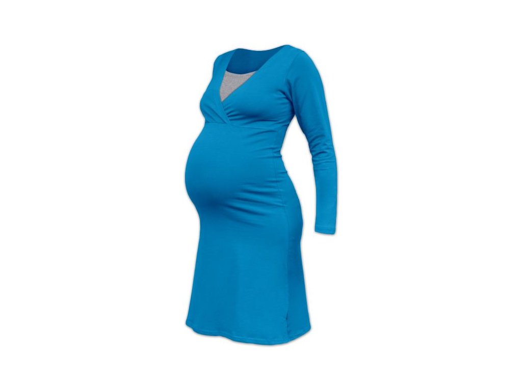 Těhotenská a kojící noční košile s dlouhým rukávem - Eva tm. tyrkys