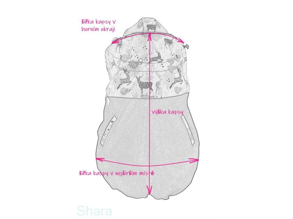 Regulace pomocí gumiček po obvodu kapsy a za krkem dítěte
