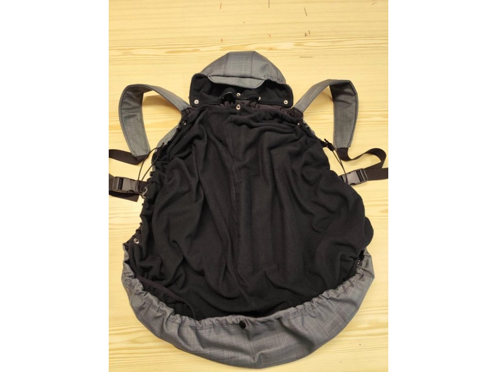 Kapsa primárně zahřívá pouze dítě. Je vlastně něco jako deka, kterou zakryjete děťátko v šátku či nosítku (i s nožičkami, hlavičku zase ochráníte kapuckou, pokud ji kapsa má) a zakryjete tak část mezi Vaší nedopnutou bundou či mikinou. Nebo i v případě, že Vy ještě vystačíte s mikinou/svetrem, ale dítě už zateplení potřebuje (přeci jen, Vy se zahřejete nošením :) ).