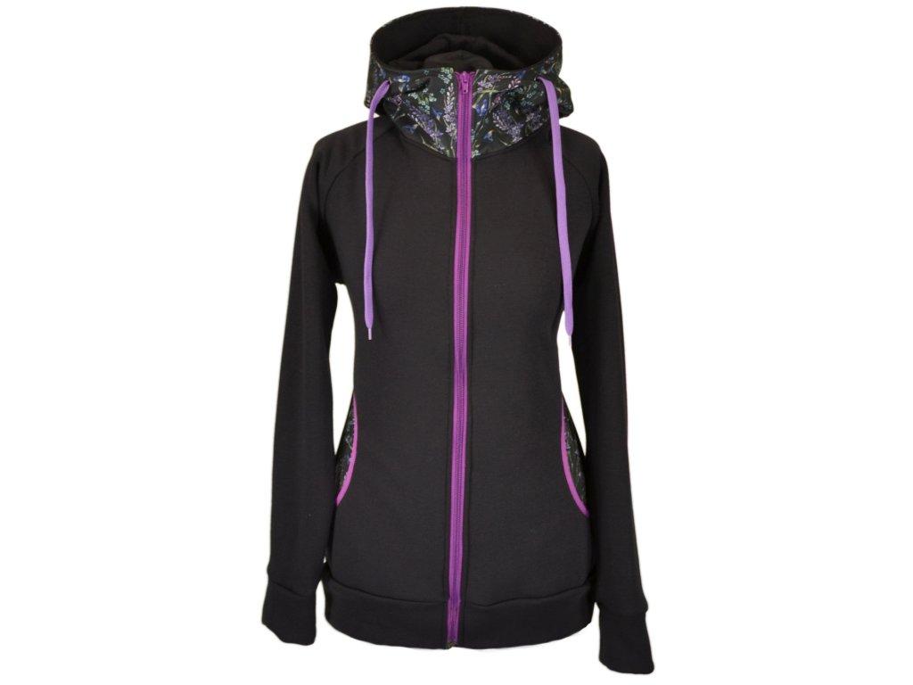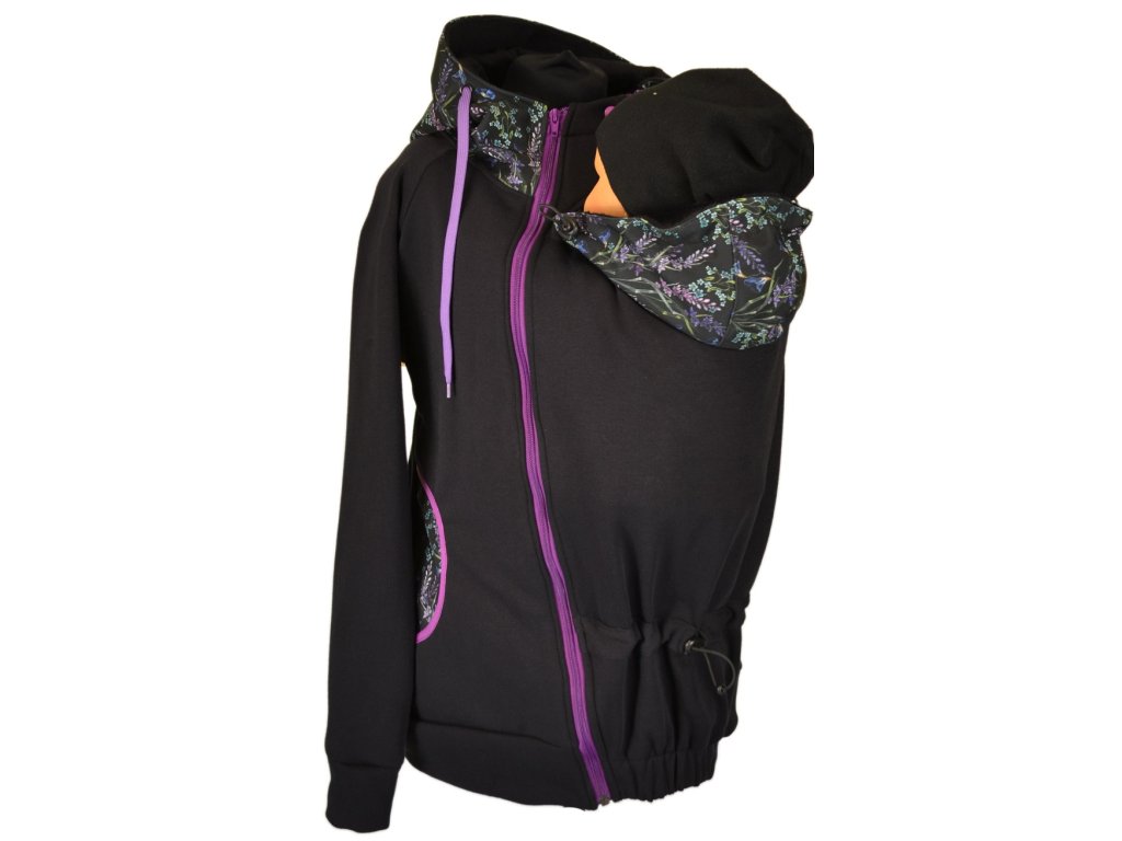 Nosící, dámská mikina - Černá/bylinky/fialová