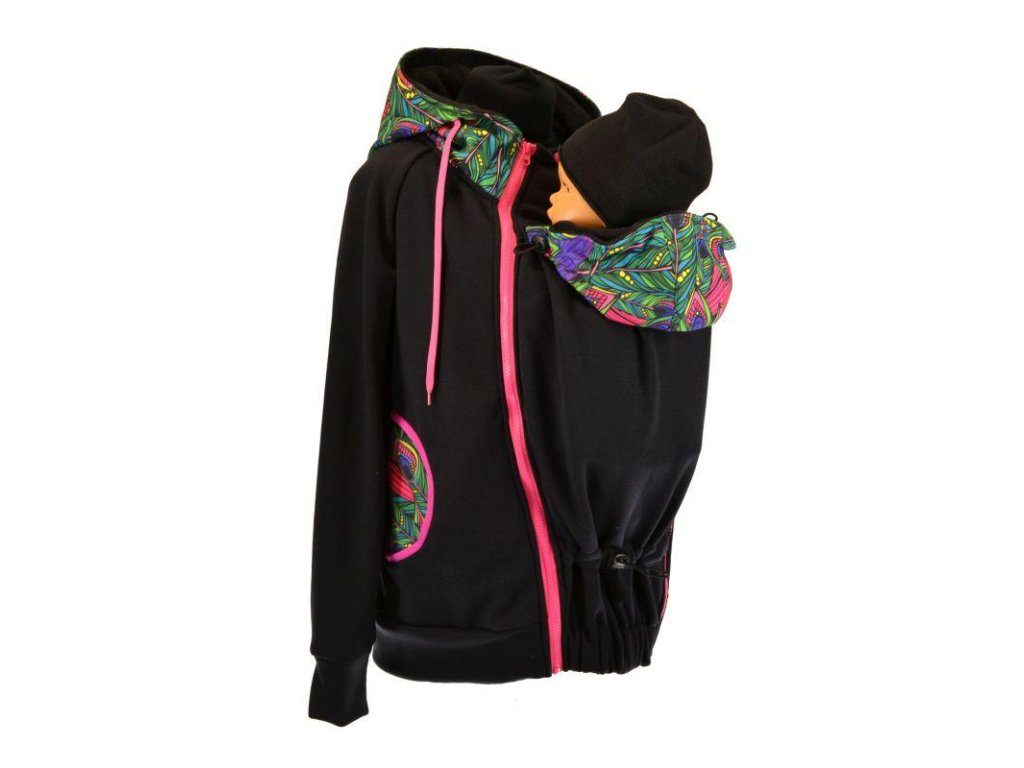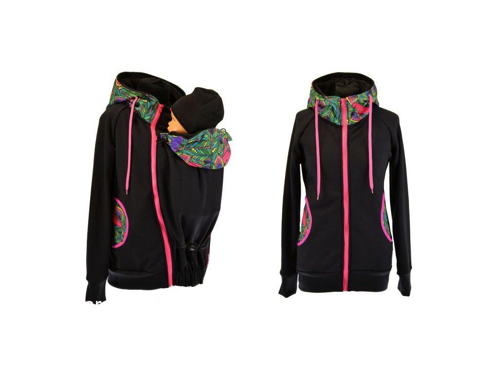 Nosící, dámská mikina - Černá/paví pera/růžová