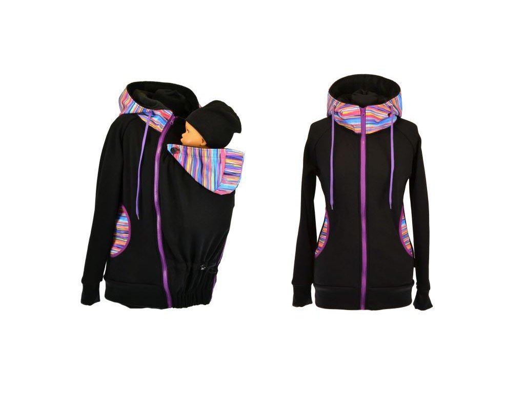 Nosící, dámská mikina počesaná - Černá/čáry/fialová