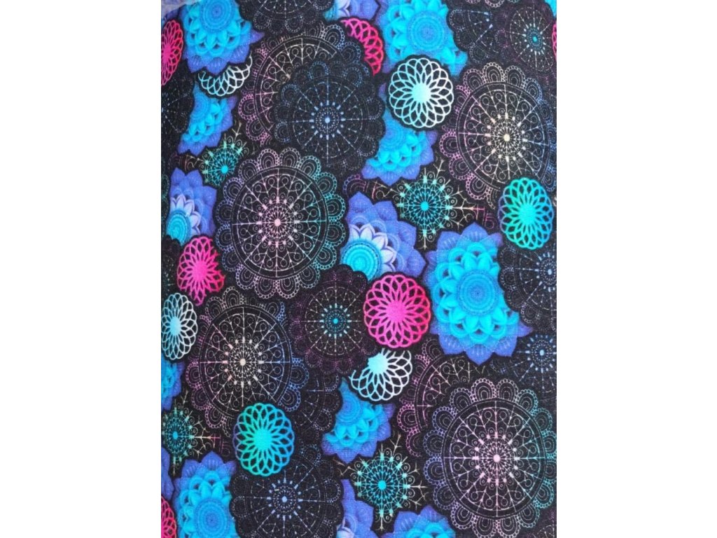 Nosící, dámská mikina počesaná - Černá/mandaly barevné