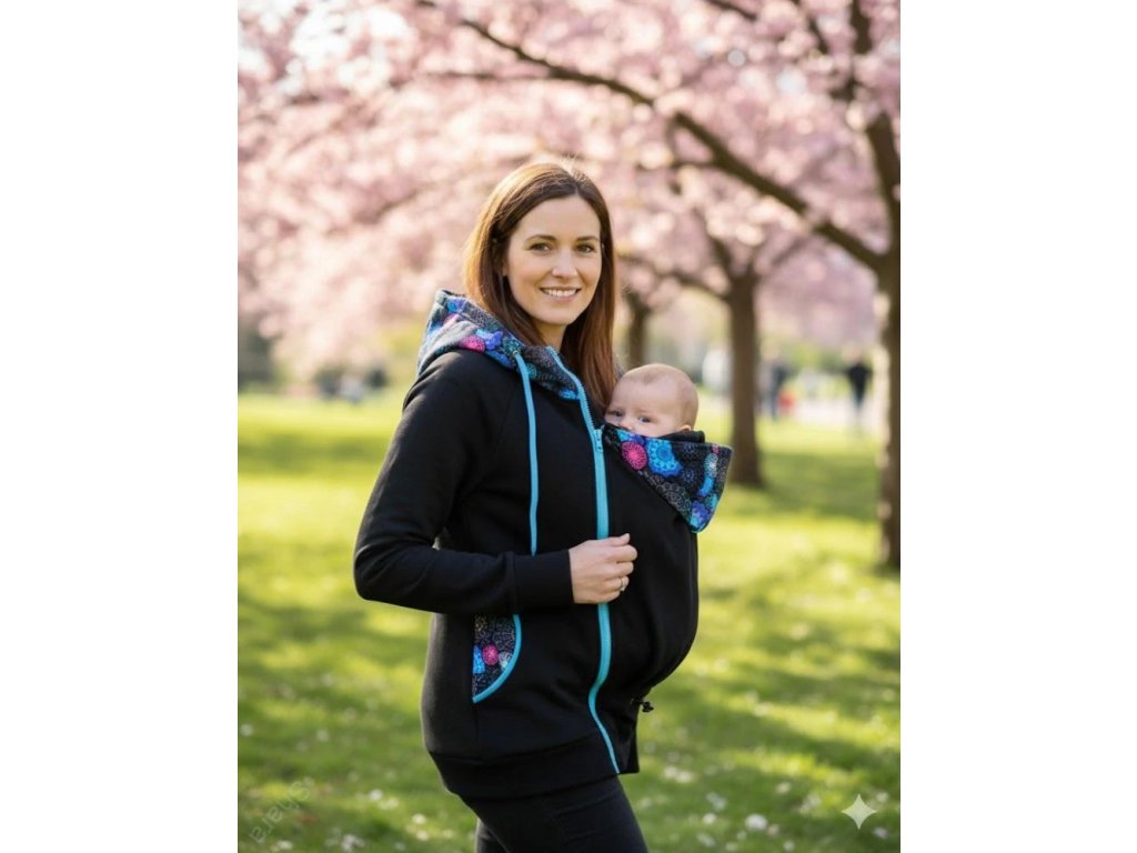 Sama si zvolíte, jestli mikina bude pouze pro přední nošení, nebo i pro nošení dítěte na zádech. Nebo, pokud se Vám mikina líbí, ale dítě v šátku/nosítku nebudete nosit, lze zakoupit rovnou pouze samotnou mikinu, bez vsadky.