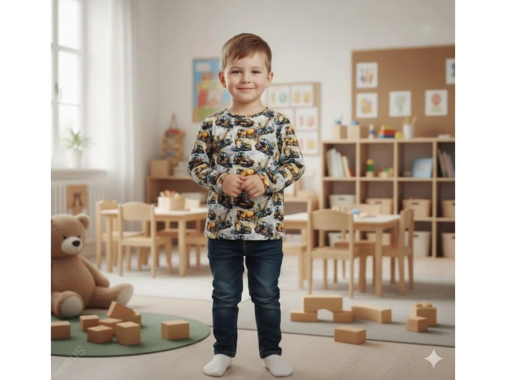 Teplejší tričko s dlouhým rukávem pro děti - Bagry