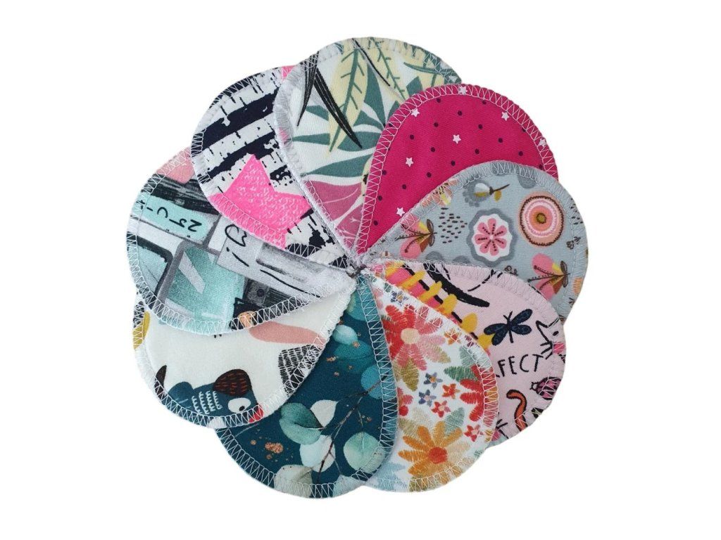 Tyto tamponky jsou vyrobeny ze 3 vrstev - lícová strana ze 100% antibakteriální jednolícní jednobarevné bavlny s membránou s ionty stříbra a rubová strana z bavlněného potištěného úpletu (různé tisky, které se mohou lišit od fotografie - jedná se o zbytky látek)