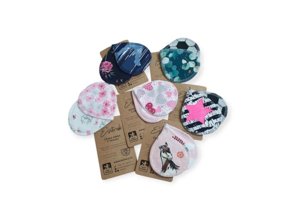 Tyto tamponky jsou vyrobeny ze 3 vrstev - lícová strana ze 100% antibakteriální jednolícní jednobarevné bavlny s membránou s ionty stříbra a rubová strana z bavlněného potištěného úpletu (různé tisky, které se mohou lišit od fotografie - jedná se o zbytky látek)