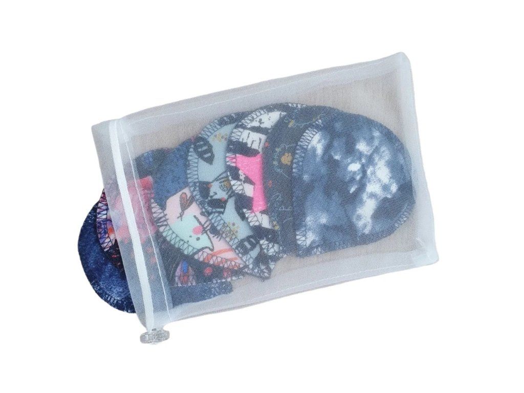 3. Údržba a praní - Po použití tampony jednoduše vyperte v pračce na 60°C. Můžete použít i sušičku. Nepoužívejte aviváž, která by mohla zanášet vlákna tamponu. Ideálně perte v pytlíku na praní, který tamponky udrží pohromadě a zabrání jejich ztracení v pračce