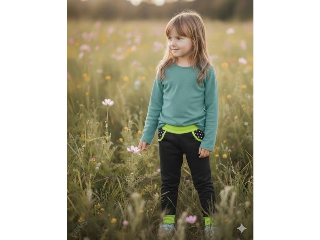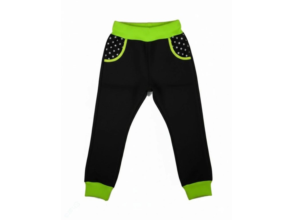 Dětské tepláky - Černá/hvězdičky/neon