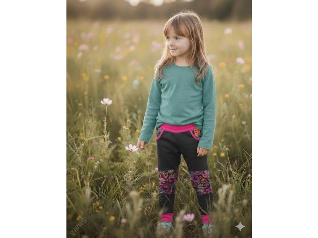 Dětské tepláky - Černá/ornamenty (dvojitá kolena)