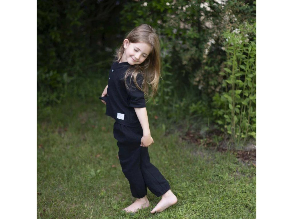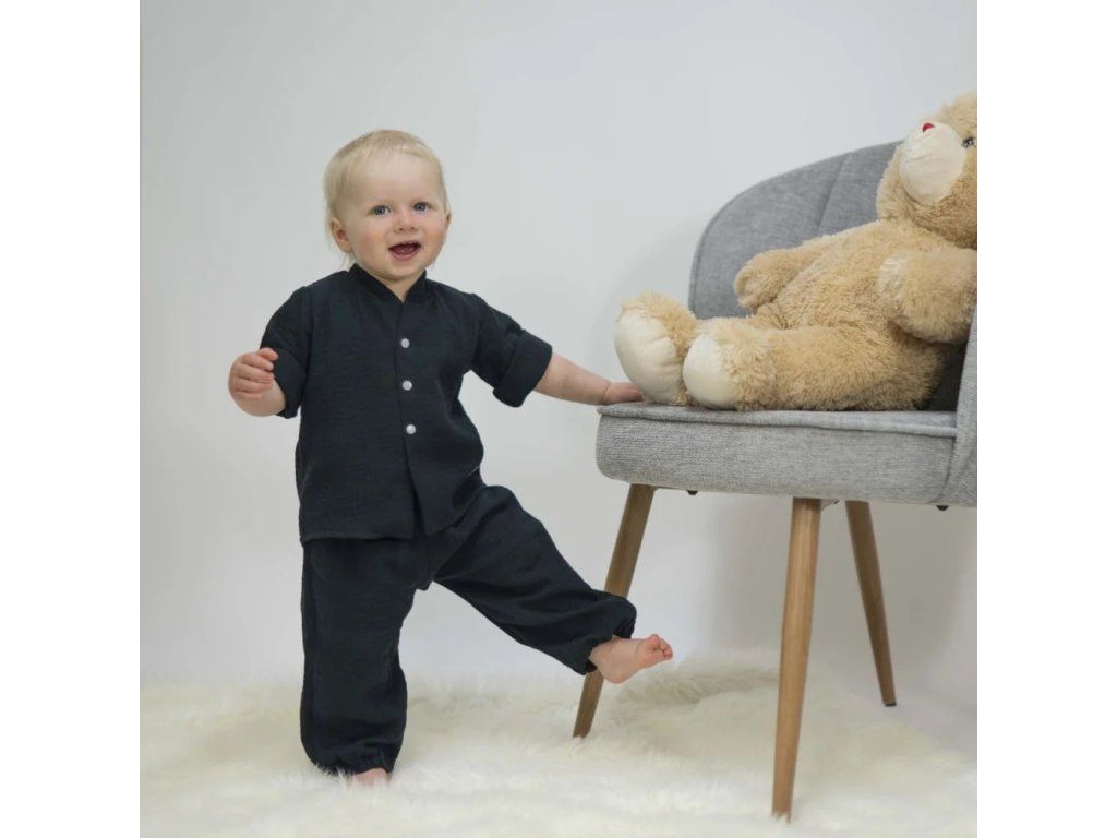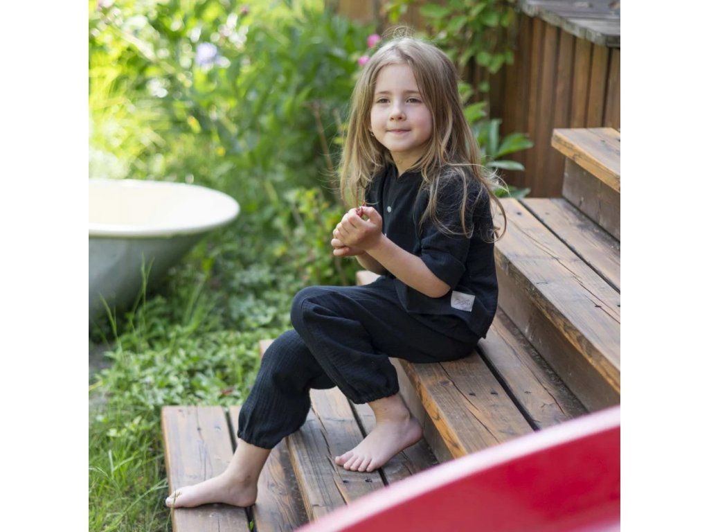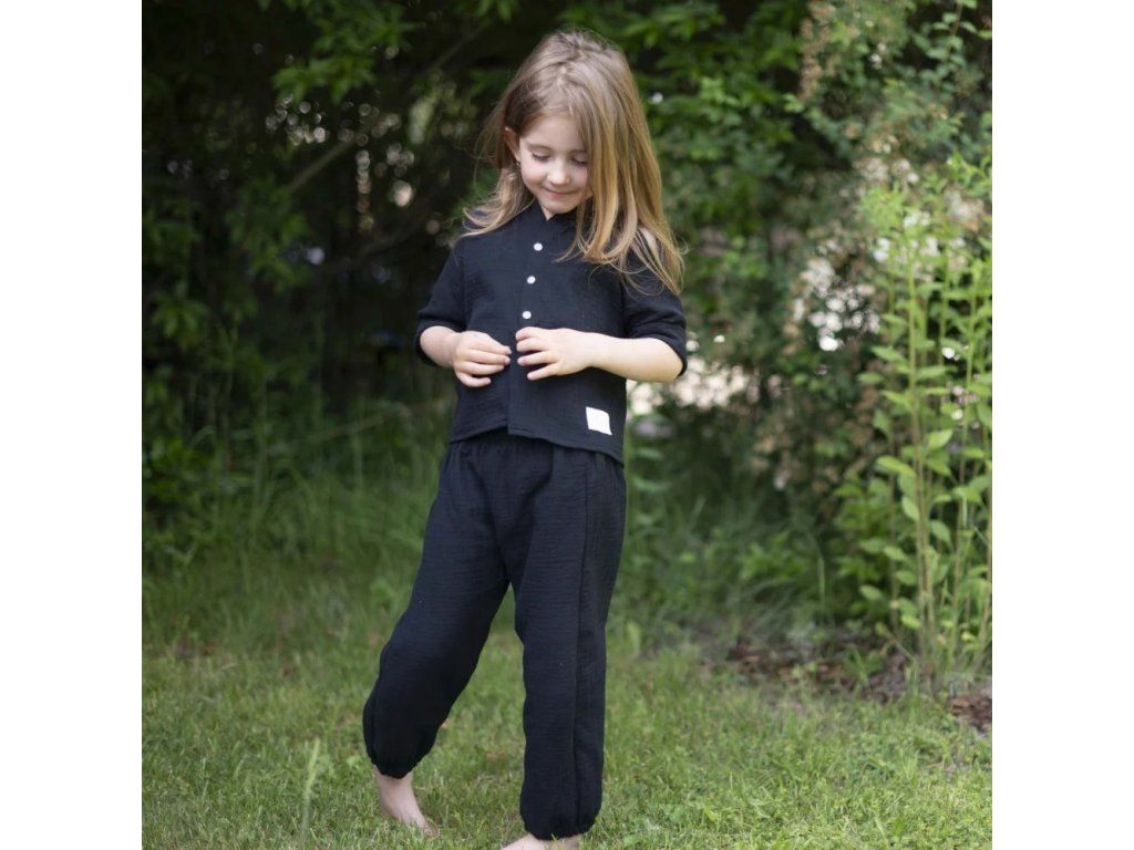 Mušelínové kalhoty, zajišťující naprosté pohodlí, žádné pocení i během horkých letních dnů. Kalhoty jsou tak jemné, že se v nich dítě cítí jako by bylo zahaleno v obláčku a zároveň je chráněno před horkými paprsky
