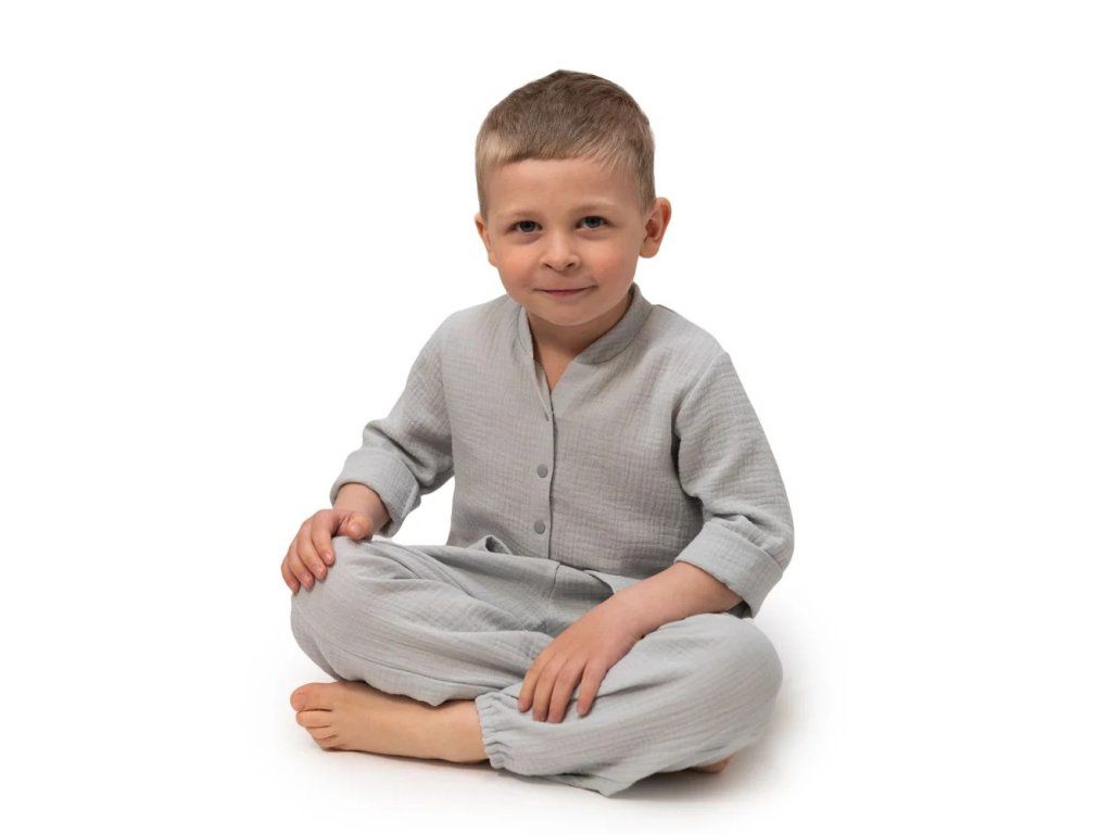 Mušelínové kalhoty, zajišťující naprosté pohodlí, žádné pocení i během horkých letních dnů. Kalhoty jsou tak jemné, že se v nich dítě cítí jako by bylo zahaleno v obláčku a zároveň je chráněno před horkými paprsky