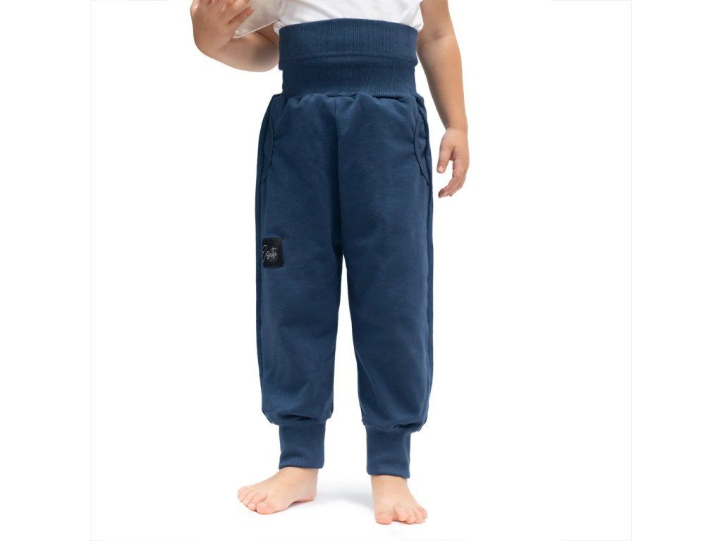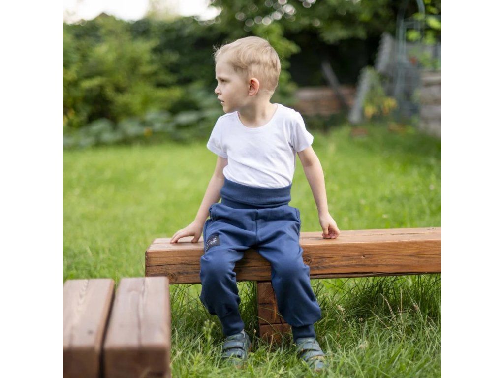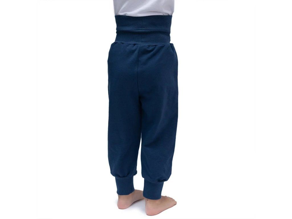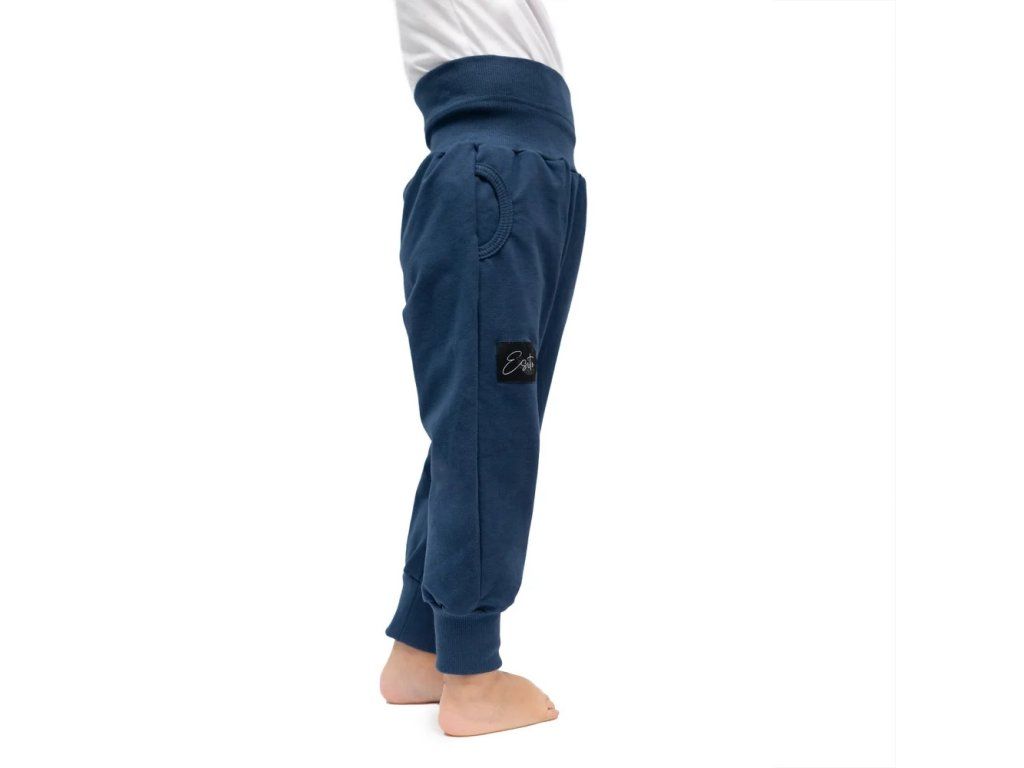 Rostoucí, bavlněné a navíc pružné tepláky osvědčeného střihu, s vysokým bavlněným nápletem v pase.