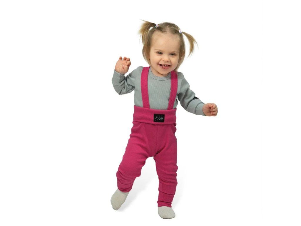 Rostoucí žebrované kalhoty s laclem - Color hot pink