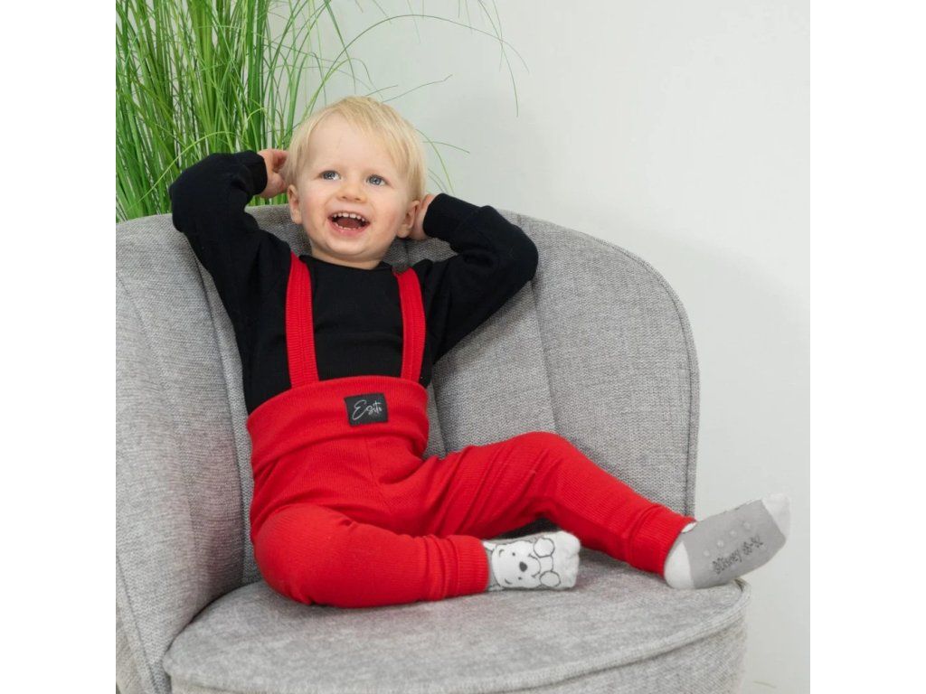 Bezkonkurenční pohodlí – Super pružné a měkké materiály zaručují pohodlné nošení bez otlaků. Pružné překřížené lacle na zádech zajistí, že kalhoty budou bezpečně držet na místě, aniž by omezovaly pohyb malého dobrodruha