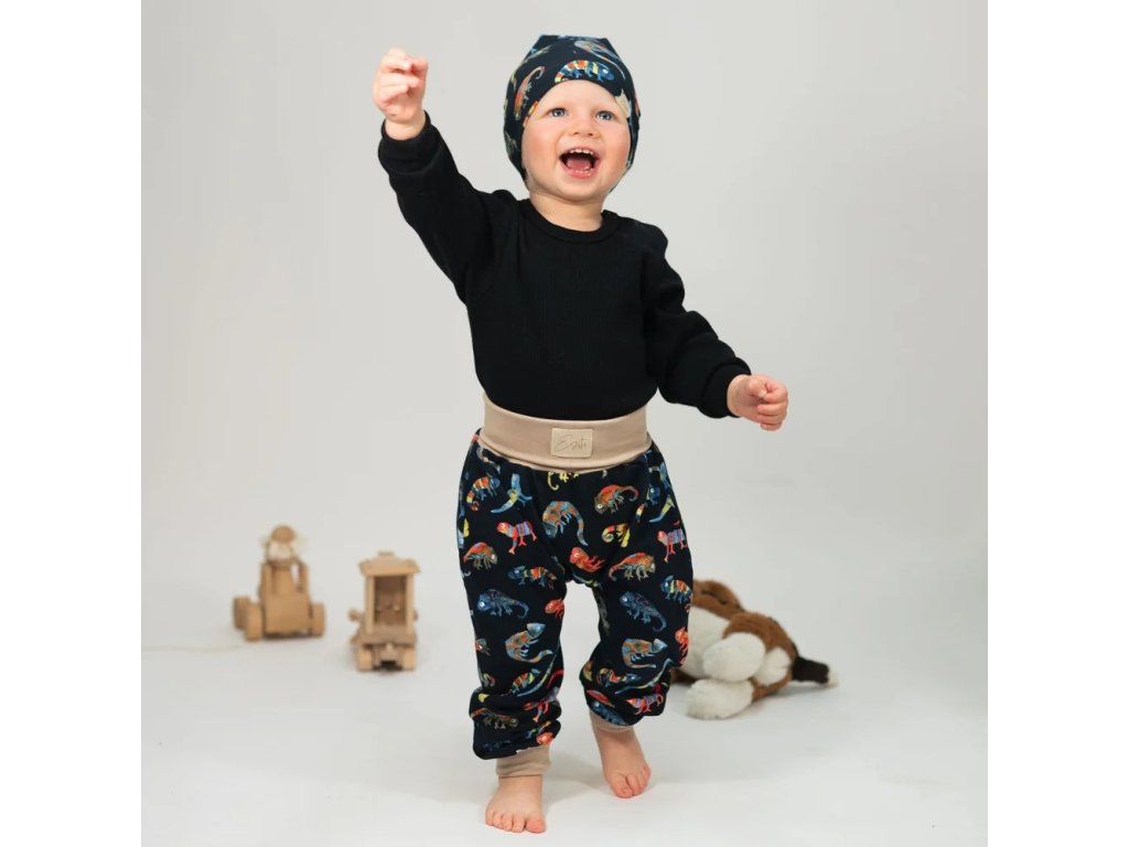 Chytře navržené rostoucí tepláky - pokryjí několik velikostí. Tepláky baggy děti milují díky volnému pohybu