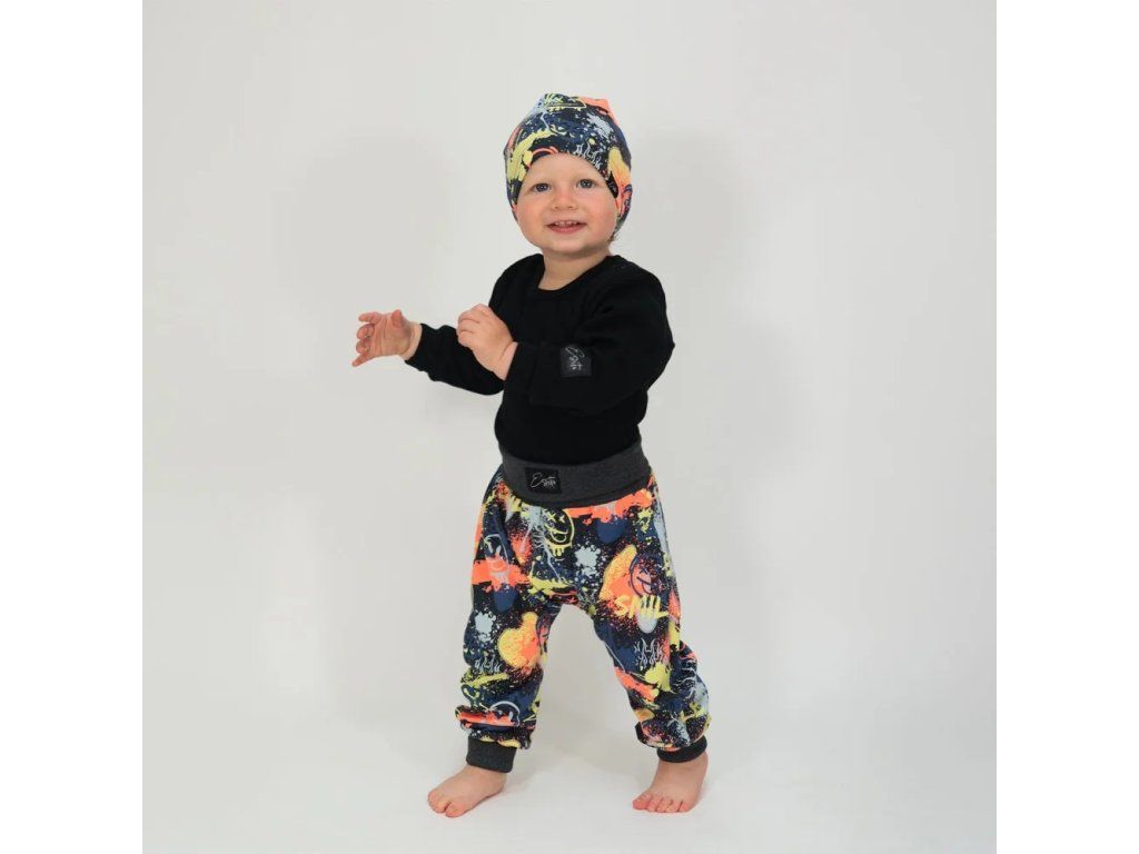 Chytře navržené rostoucí tepláky - pokryjí několik velikostí. Tepláky baggy děti milují díky volnému pohybu