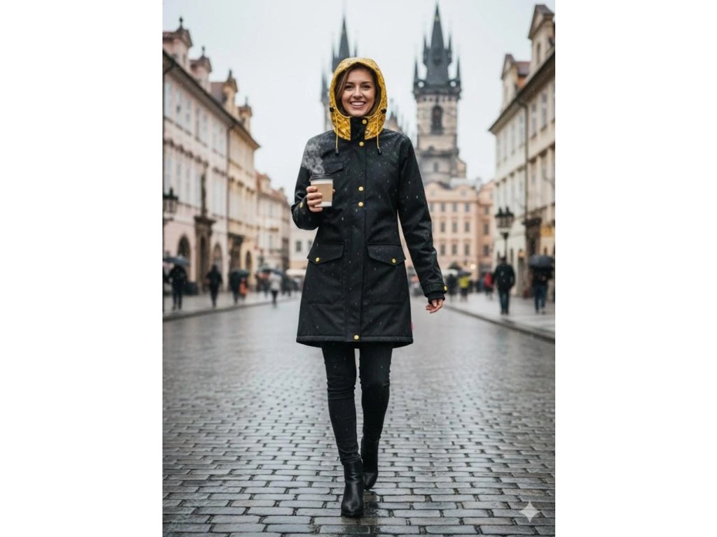 Softshellový kabát dámský - Černá + kvítí na hořčicové