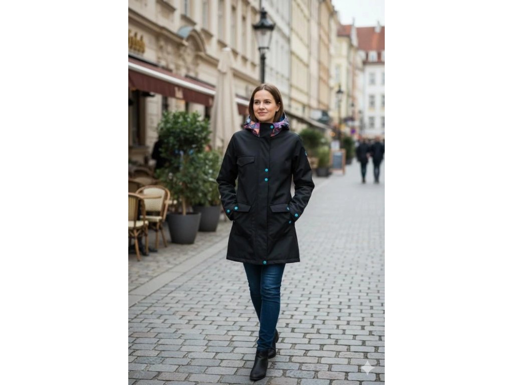 Softshellový kabát dámský - Černá + mandalové trojúhelníky/petrolejová