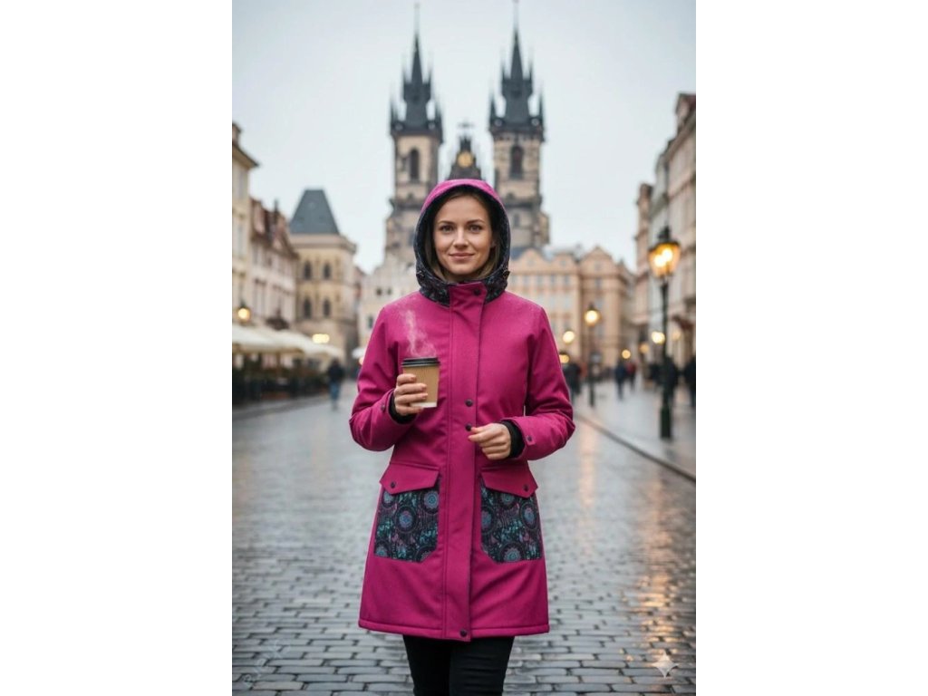 Softshellový kabát dámský - Fuchsie/lapače snů