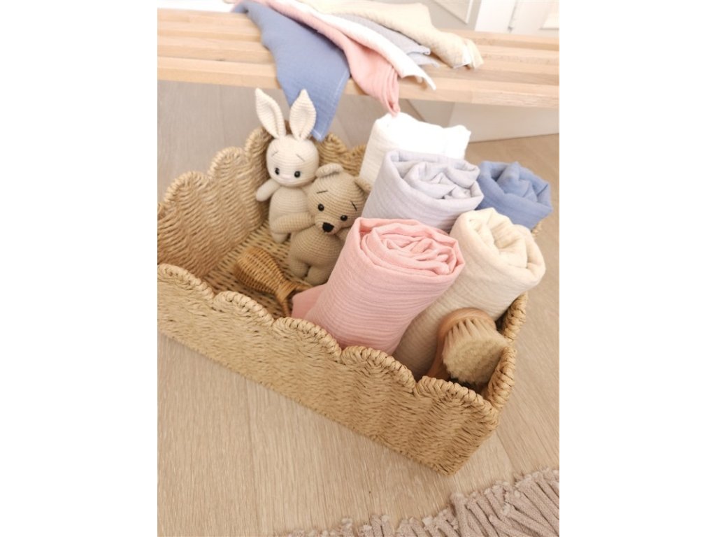 Mušelín, známý svou vzdušností a výbornými absorpčními vlastnostmi, zajistí vašemu dítěti pohodlí v jakékoli situaci. Bavlněný mušelín zajišťuje správné proudění vzduchu, díky čemuž jsou plenky ideálním doplňkem kočárku v horkém počasí. Je ideální pro horké dny. Plenka může sloužit i jako lehká přikrývka, nebo podložka při přebalování, posezení v trávě, apod.; jako mazlík při usínání, při kojení, na rameno, když dáváte miminko odříhnout,... Navíc má hydroskopickou strukturu, což znamená, že absorbuje vlhkost mnohem lépe než bavlna. Plenku lze použít i při koupání, čímž se promění v jemnou žínku, nebo ji lze použít i jako osušku.