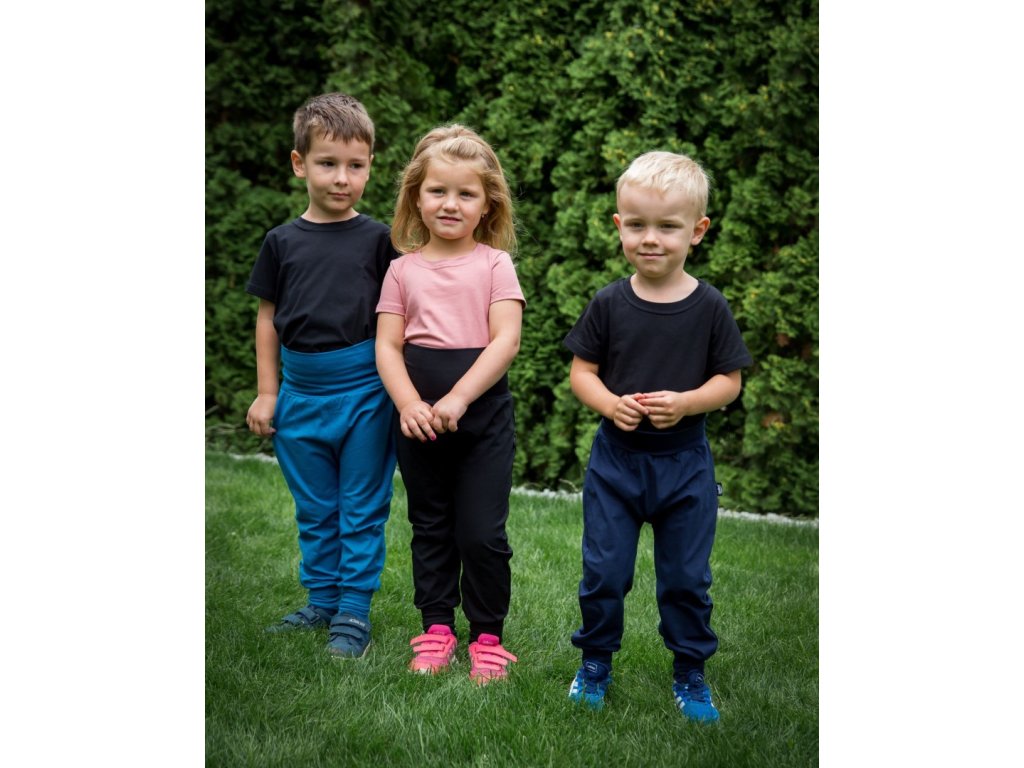 Tyto baggyny jsou z lehkých, "tričkových" úpletů, nejsou z klasické teplákoviny. Díky tomu jsou prodyšné a ideální pro děti, které se snadno přehřívají. Maminky holčiček často volí legíny, ale pro kluky je nabídka lehkých kalhot méně pestrá.  Tyto dětské baggy kalhoty jsou proto ideálním řešením pro aktivní kluky, kteří se v těžkých teplácích potí.