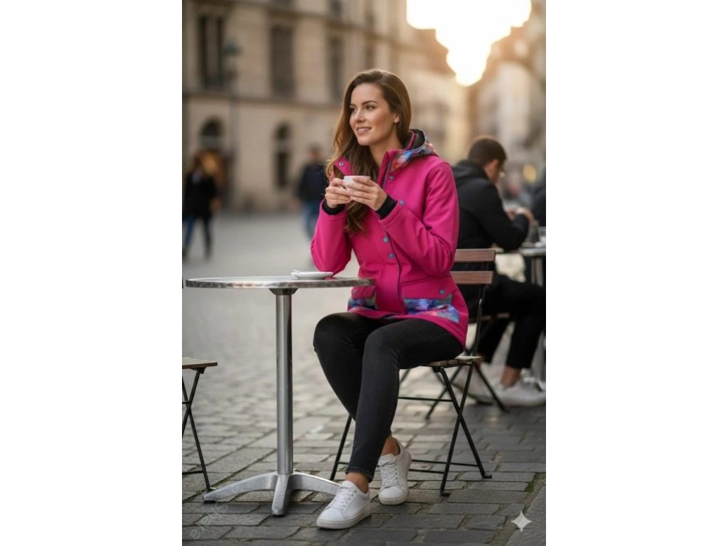 Nosící softshellová bunda - Šárka malina/duhové mandaly