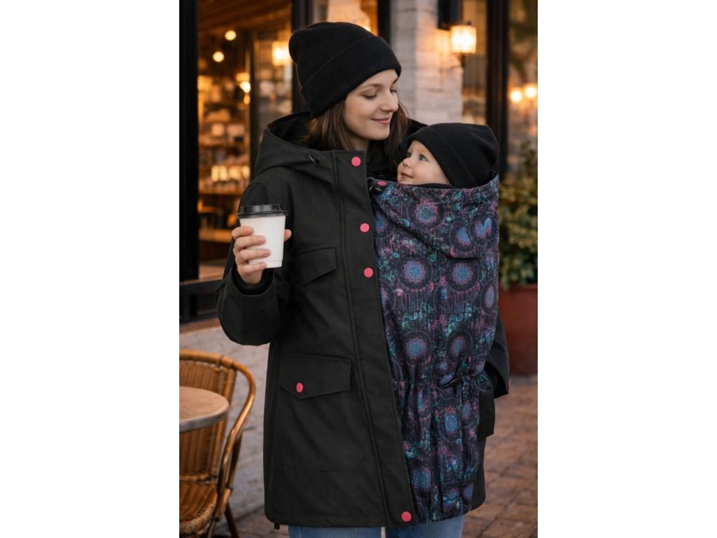 Sama si můžete zvolit, jestli kabát bude pouze pro přední nošení, nebo i pro nošení dítěte na zádech.