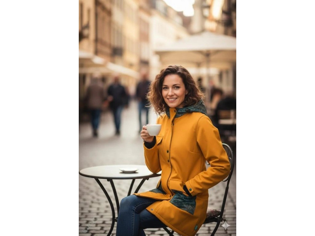 Nosící softshellový kabát - Medová/modrozlatá obloha