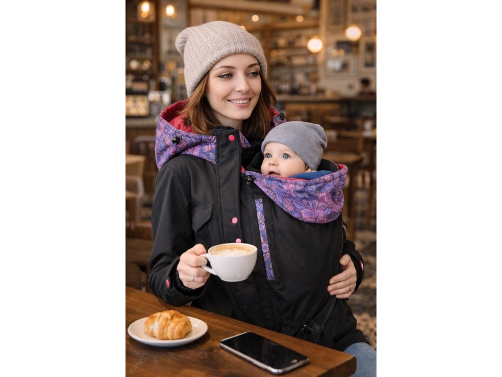 Sama si můžete zvolit, jestli kabát bude pouze pro přední nošení, nebo i pro nošení dítěte na zádech.