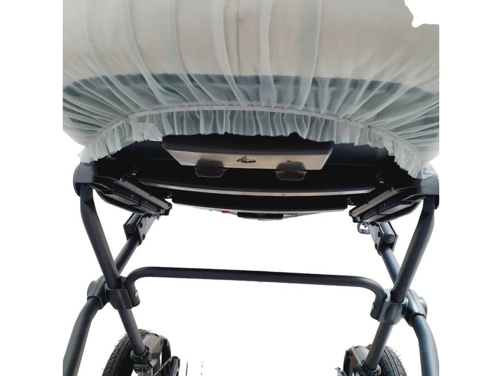 Ve spodní části je použitá vysoce elastická guma, díky které síť těsně obepne korbičku kočárku a zabrání tak proniknutí hmyzu k miminku
