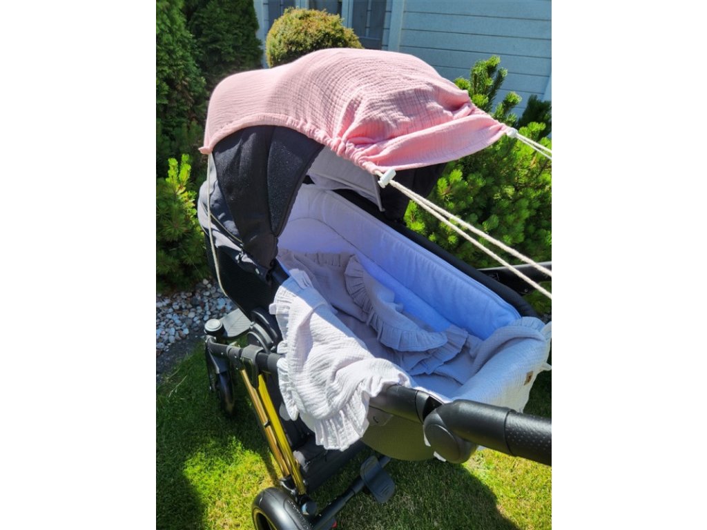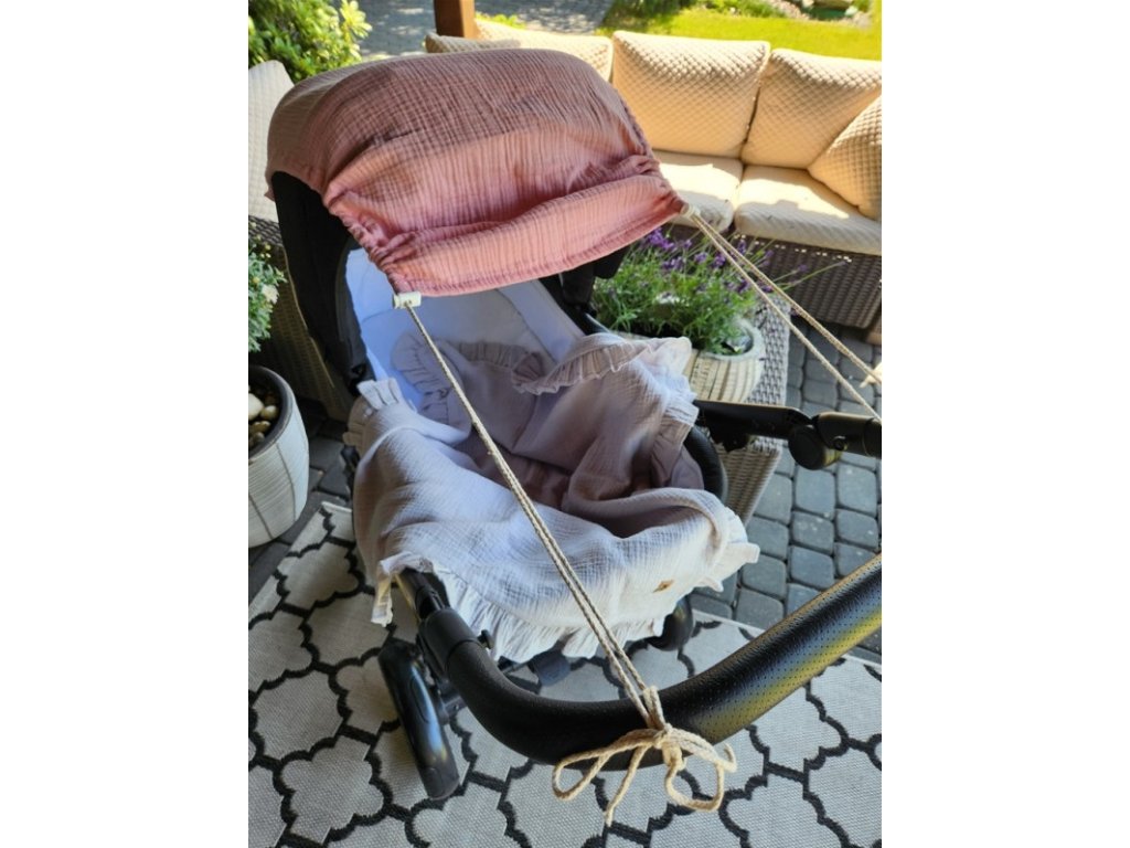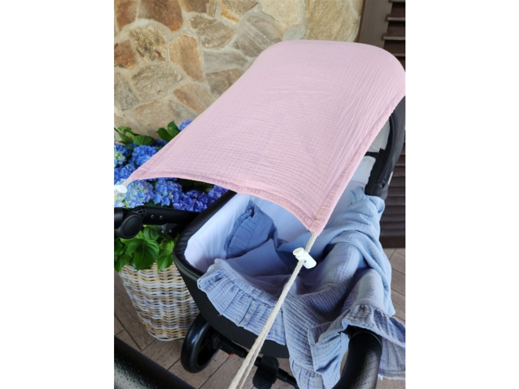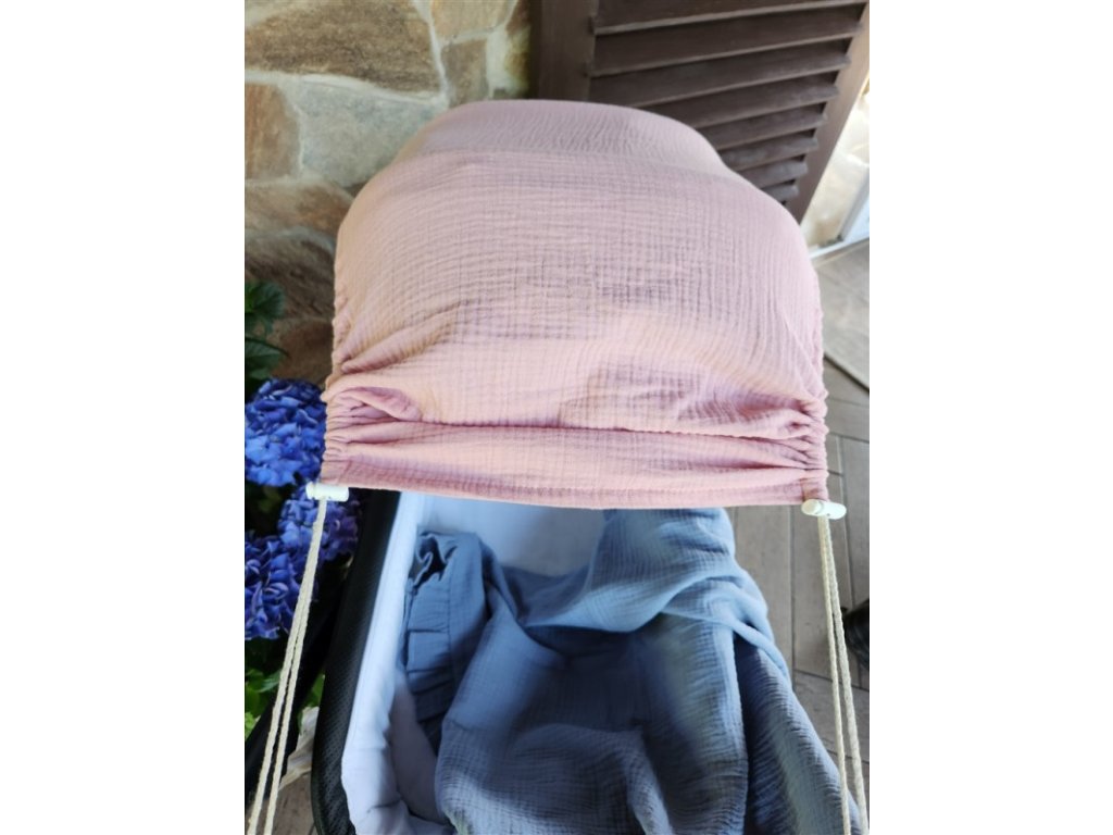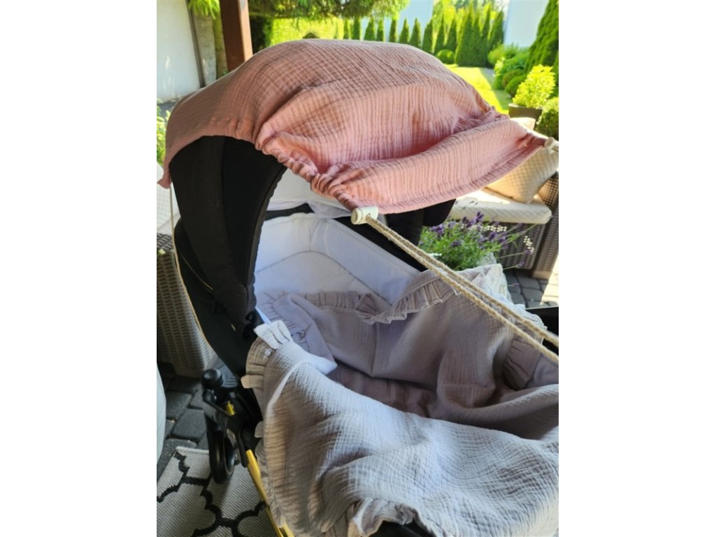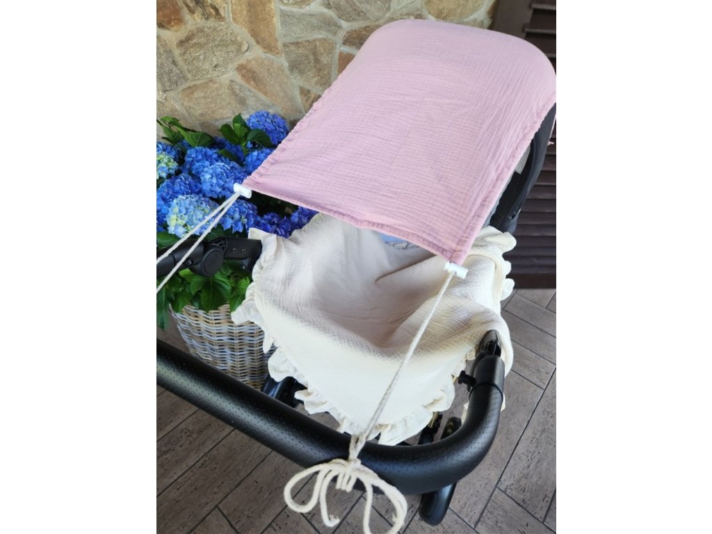 Mušelínová clona, stříška na kočárek - Nature pudrově růžová