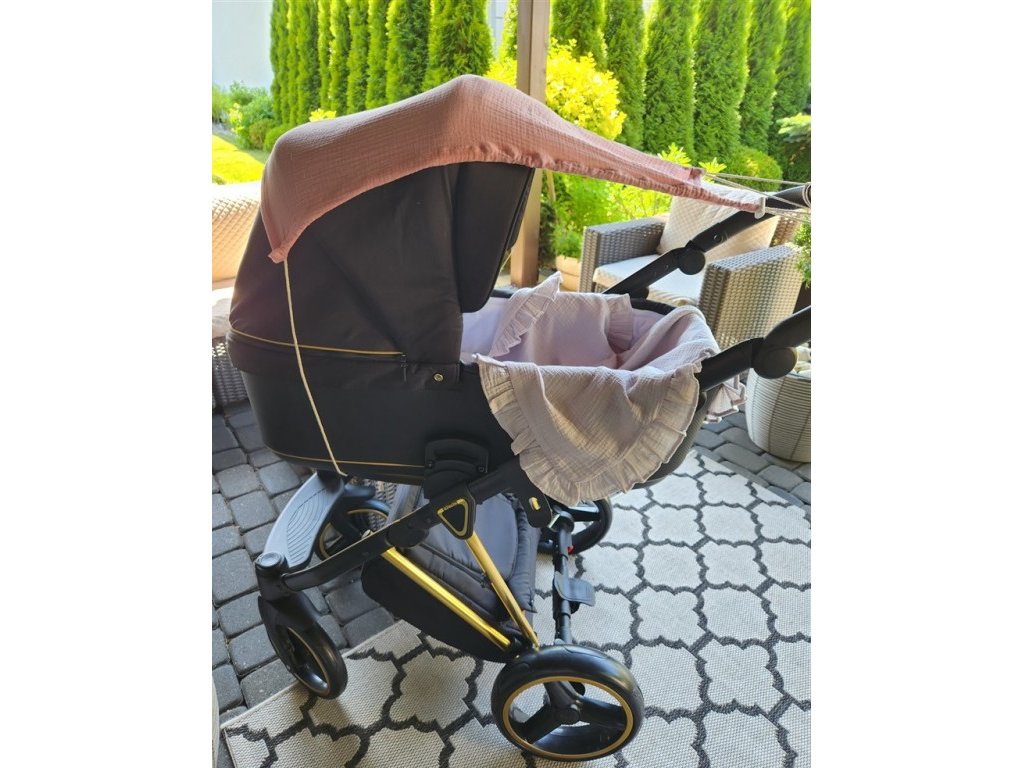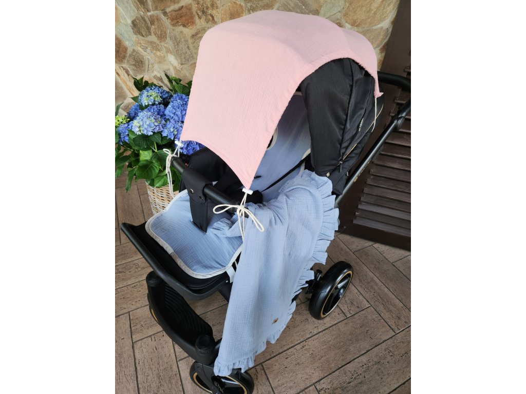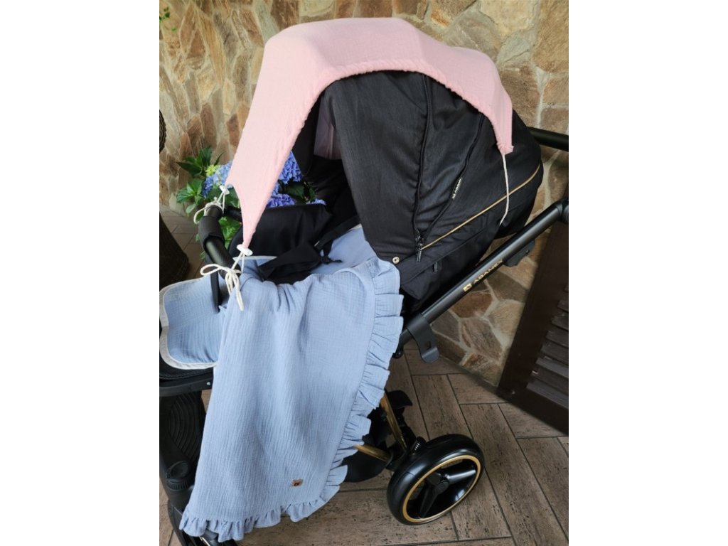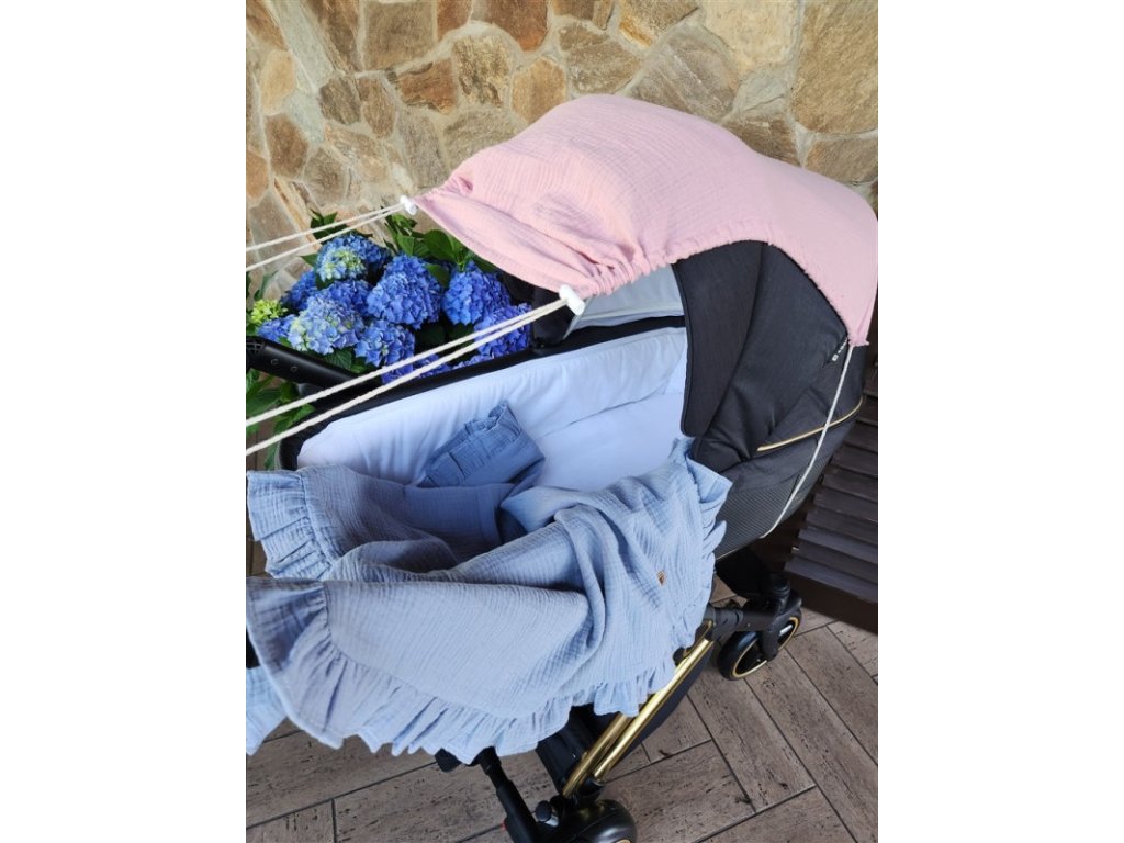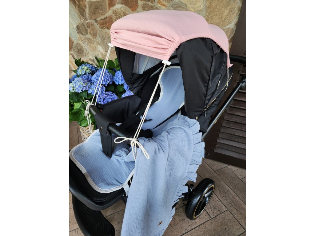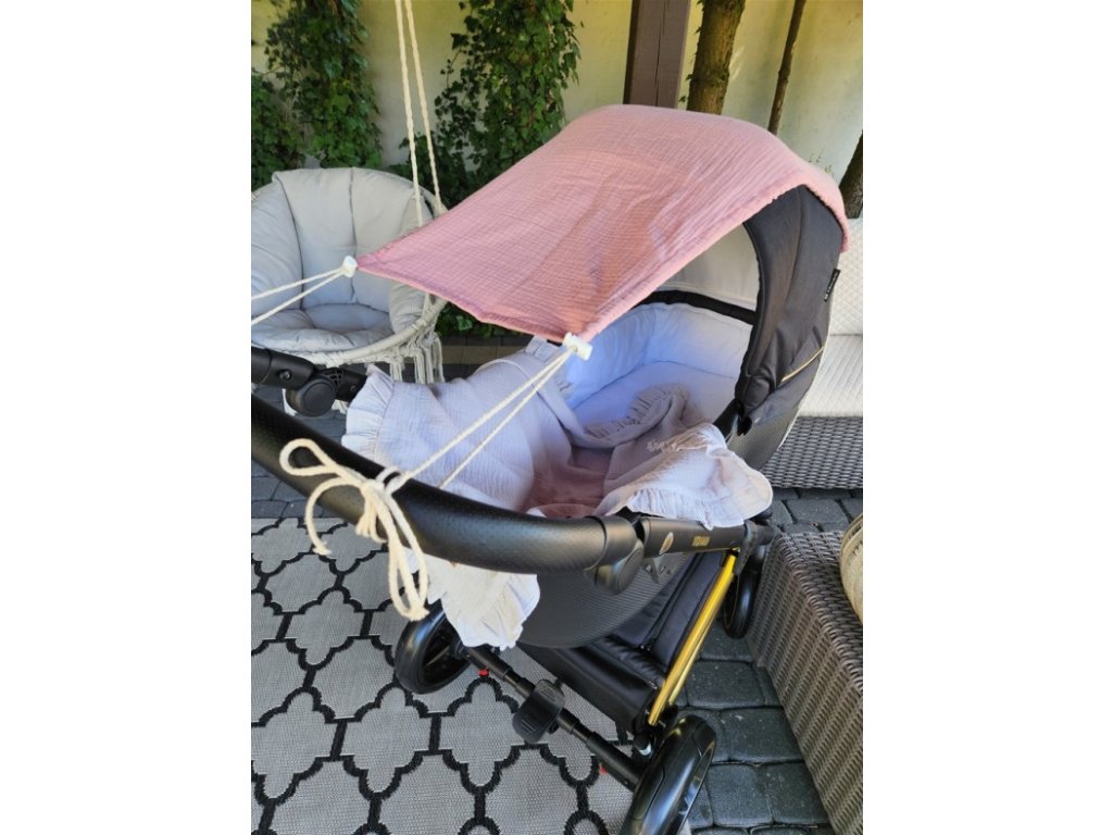Mušelínová clona, stříška na kočárek - Nature pudrově růžová