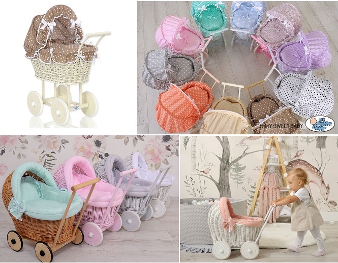 Nadčasové kočárky pro panenky, medvídky a jiné plyšáky. 100% ruční práce, vyrobené v nejvyšší kvalitě, z přírodních materiálů, natřené ekologickými barvami, které jsou určené na hračky pro děti. Polštářky, peřinky a obšití jsou ze 100% bavlny.
