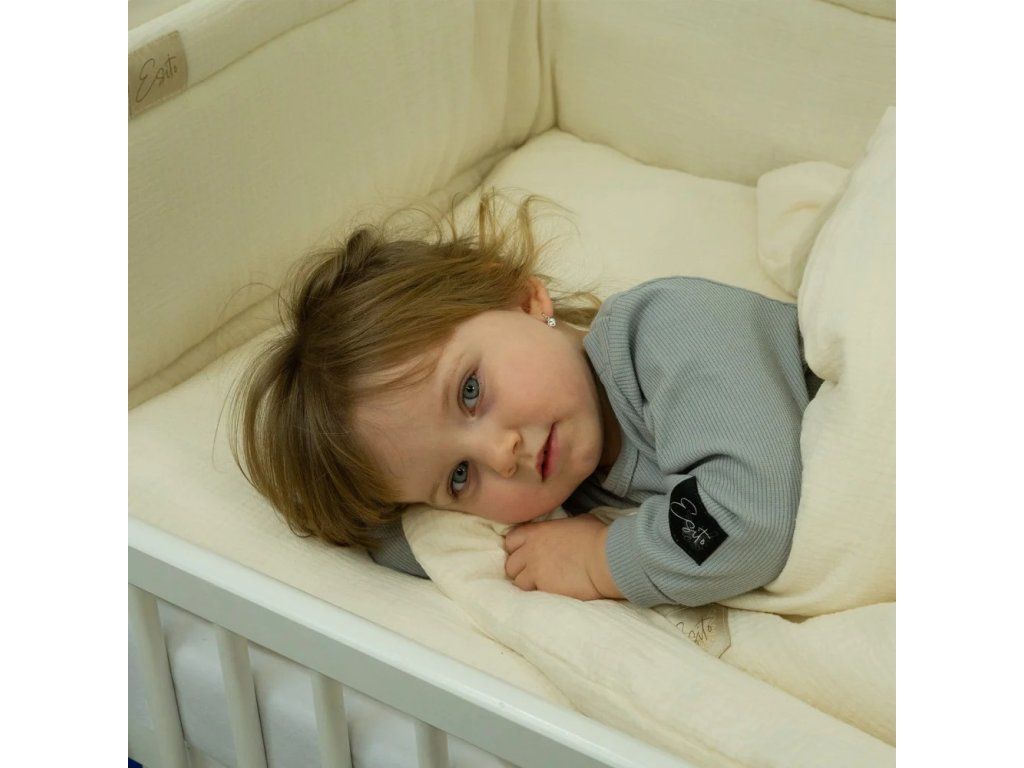 Mušelínový mantinel do postýlky je oboustranný, libovolně umístitelný, měkký a zároveň držící tvar