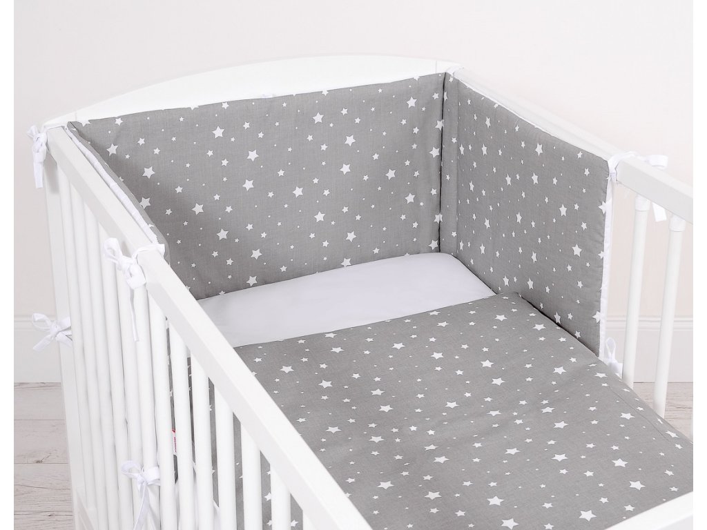 Rovný mantinel - Mini hvězdičky na šedé/bílá