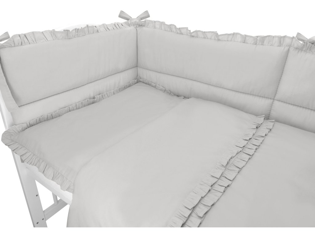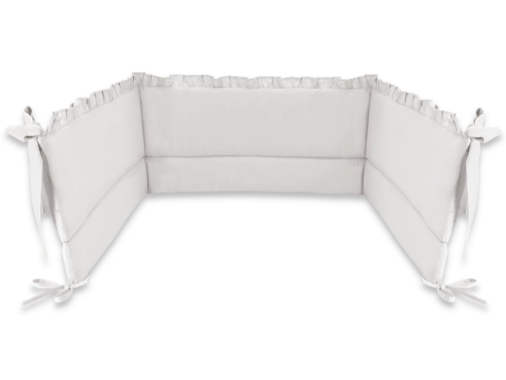 Elegantní rovný mantinel, ozdobený volánkem. Povlak je pevně přišitý, nelze ho sundat